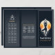 Modern Yoga Fitness Studio / Meditation Instructor / Personal Trainer / Life Coach / Healer / Reiki Master / Massage Therapy Tri-Fold Brochures Template - Modern Yoga Meditation Pose / Tree Pose (Vrksansana) With Full Moon on Dark Blue Colour Background.