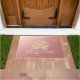 Yoga Studio Meditation Instructor / Life Coach / Healer / Reiki Master / Massage Therapy Welcome Doormat Templates - Modern Elegant Faux Gold Foil Lotus on Rose Gold Texture Background.