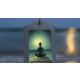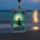 Yoga Meditation Pose on Rock Full Moon Stars Night ID Badge