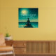 Yoga Meditation Pose on Rock Moon Star Ocean Quote Poster