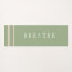 Yoga is written in elegant black script on front. Calming pastel blush pink and sage green stripes against white background. Breathe is written on backside in white typography against green background with double pink geometric stripes. Original Design by TamiraZDesigns.