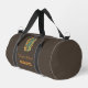 Yoga pose retro swirls name slogan taupe brown duffle bag