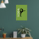 A poster with a simple design of a black silhouette of a woman performing a yoga pose. Set on a green background with yoga written in white.