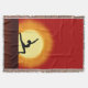 © Sunny Mars Designs - Yoga Sunrise Warrior Pose Silhouette Quality All-Season Woven Throw Blankets - Cool, unique, vibrant red and yellow custom 54" x 38" custom polyester and cotton blend woven throw blanket with the silhouette of a woman practicing yoga with the sunrise in the background. Concept for health, fitness, peace and tranquillity. Perfect for yogis, yoga instructors, yoga teachers, yoga lovers or yoga students.