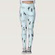 Yoga poses and text pattern on blue leggings