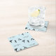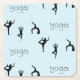 Yoga poses and text pattern on blue square paper coaster