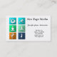 This business card is perfect for a yoga studio or anyone involved in the yoga business. It features six colourful squares with people doing yoga poses in them . All text is customisable.