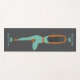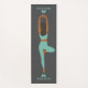 This design features brown and light green, a single yoga position on a grey background and customisable name.
