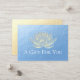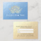 Yoga Studio Meditation Instructor / Life Coach / Healer / Reiki Master / Massage Therapy Gift Certificate Card Template - Modern Elegant Faux Gold Foil Lotus on Blue Gold Texture Background.