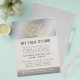 Yoga Studio Meditation Instructor / Life Coach / Healer / Reiki Master / Massage Therapy Open House Flyer Template - Modern Elegant Faux Gold Foil Lotus on Silver Floral Damask Background.