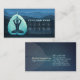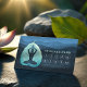 Yoga Fitness Studio / Meditation Instructor / Personal Trainer / Life Coach / Healer / Reiki Master / Massage Therapy 10 Class Pass Loyalty Card Template - Modern Faux Light Teal Blue Green Gold Foil Bodhi Leaf Cutting as Yogi in Easy Seat pose / YOGA Easy Pose / Sukhasana Pose on Dark Blue Wave Pattern Grunge Background.
