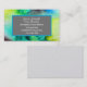 A business card suitable for a Yoga Teacher or Yoga Instructor. This stylish and professional business card has an image of an arty blue and green watercolor fluid painting. This card can be customized to include your own personal information, qualifications and studio address.