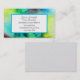 A business card suitable for a Yoga Teacher or Yoga Instructor. This stylish and professional business card has an image of an arty blue and green watercolor fluid painting. This card can be customised to include your own personal information, qualifications and studio address.