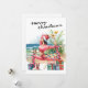 Yoga Woman with Gift at Beach Christmas themed Holiday Card