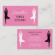 Yoga workshop business card template design with pose logo. Customisable colours. Pink example. Professional layout with modern typography. Customisable colours and typography. Ideal for yoga studio teacher, pilates instructor, personal trainer, sports coach, gym trainer, meditation, mindfulness, spiritual teachings, healer, beauty salon and more. Create standard visit cards for self employed person, starting boss, employees, co workers, partners, manager, friends, family, customers, guests etc. Add your own unique address information and job title. Double sided print. Custom office supplies for beginning a new company. Choose from different paper qualities, thickness and styles. Printing with glossy or matte finish. Change quantity to get the cheap low bulk pack prices. Calm tree pose silhouette.