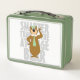 This is a standard metal lunchbox that appears to work just fine. We designed this box ourselves with an uploaded photo and custom text on the front and back. It looks absolutely beautiful except the front of the lunchbox is not centered like it shows in the photo. The print borders don't align with the inset flat part of the box where the preview photo online showed it perfectly centered in there. The back looks nice and centered though.