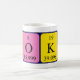 Yoko spelled out as Y O K O (Yttrium Oxygen Potassium Oxygen) on a mug for the scientist in you.