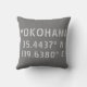 Modern, urban throw pillow design features latitude and longitude coordinates of Yokohama, Japan. Great gift idea for those who love to travel or as a hometown memento.