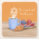 This paper coasters features a digital hand illustration by Daphsam, with a steaming cup of coffee forming a Star of David, surrounded by pomegranates, figs, and a sweet rugelach. A perfect touch of tradition and warmth for your Yom Kippur Break-the-Fast, celebrating reflection, renewal, and togetherness.