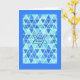 A Yom Kippur Greeting Card with a Star of David, set in a geometric pattern in blue, green and white, from a handpainted design by Judy Adamson.