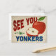 A charming Yonkers New York vintage travel postcard featuring a lovely red apple, along with fun retro style text that says, "See you in Yonkers"