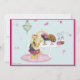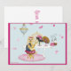Cute design for children's parties, birthdays, announcements, etc. Pretty pink and blue design for girls. Use for invitations, thank you notes and many more occasions. Little Yorkshire Terrie sitting at her dressing table with her pretty hats and a chandelier in the background. If you need help with personalising contact Greer at greerdesign@aol.com