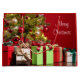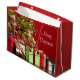 Yorkie, or Yorkshire terrier, dog is peeking out from the Christmas presents hoping to get a glimpse of Santa Claus cute large sized Christmas holiday gift bag