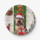 Yorkie Dog Christmas sitting outside decorated home with Christmas wreath, Christmas tree is a perfect Christmas gift idea for dog lovers.