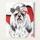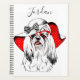 This design features a cute Yorkie in a red summer sun hat with a bow and in red glasses.