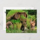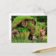 Cute Yorkshire Terrier, or Yorkie, in front of a fantasy woodland house perfect dog lovers moving or new addresss announcement postcard