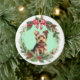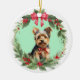 Yorkie Puppy Dog Red Bow Holly Wreath Ceramic Tree Decoration