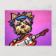 From Andie's original ink & coloured pencil illustration of a Yorkie in rose tinted star sunglasses holding a red guitar. Great gift for Yorkshire Terrier lovers.