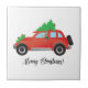 Yorkie Terrier dog Driving a Christmas Car Tile