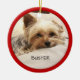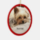 Cute Yorkshire Terrier Personalised Ornament for your Christmas Tree with a red border.
