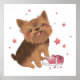 A cute illustration of a yorkshire terrier with a pink chewed shoe