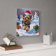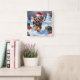 A playful Yorkipoo runs joyfully through the snowy winter scene, wearing a festive red Christmas hat. This adorable design highlights the breed’s fluffy coat, bright expression, and affectionate personality while capturing the warmth and joy of the holiday season. A delightful winter moment full of festive cheer.