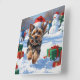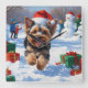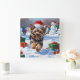 Yorkipoo Running in Snow with Christmas Hat Square Wall Clock