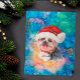 Yorkshire Terrier Breed Dog Christmas features a watercolor of a Yorkshire Terrier with a red Santa's Hat, a red Christmas scarf, and a galaxy watercolor.