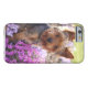 A cute photograph of a little Yorkshire terrier sitting in a pretty flower bed of purple flowers. This cute little yorkie is an adorable little lap dog and is bound to melt your heart. If you love dogs and Yorkie's then you'll love these Yorkshire terrier gift ideas.