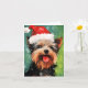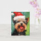 Colourful and joyful Christmas design with a Yorkshire Terrier wearing a Santa hat.