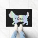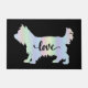 Yorkshire Terrier Dog Breed Love - yorkie dog silhouette in rainbow colours with the word love overlaid in cursive script font