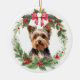 Yorkshire Terrier Dog Red Bow Holly Wreath Ceramic Tree Decoration