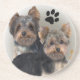 Two Yorkshire Terrier puppies pose for the camera and featured on round coaster the perfect inexpensive gift for the Yorkie Mum or Dad.