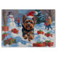 A lively Yorkshire Terrier bounds through the snow, wearing a bright red Christmas hat with joyful holiday spirit. This festive winter scene highlights the playful charm and elegance of the Yorkie, surrounded by the magic of the season. A heartwarming design that captures both the beauty of winter and the personality of this beloved small breed.