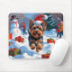 Yorkshire Terrier in Snow with Christmas Hat Mouse Pad