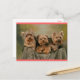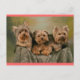 Aww...who can resist the sweet face of a Yorkshire Terrier puppy dog? This fun greeting postcard features three cute Yorkie pups sitting on a couch. They are ready to help you send greetings to family and friends.