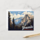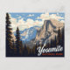 Classic vintage-style travel poster illustration featuring the iconic granite monolith Half Dome, waterfalls, and towering pine trees of Yosemite National Park, California. Captures the grandeur and natural beauty of the valley. Excellent for hikers, rock climbers, California travelers, and collectors of retro WPA national park art.