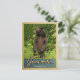 Vintage travel style Yosemite National Park image featuring a black bear standing on its hind legs, looking into the green forest.