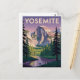 Send a piece of California's natural wonder with this vintage-style postcard featuring Yosemite National Park. The artwork captures the iconic Half Dome and the tranquil Merced River, all rendered in a classic retro aesthetic reminiscent of the golden age of American travel. This is a perfect memento for nature lovers, hikers, and anyone who wants to share the majestic beauty of this treasured landmark.