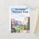 A beautifully painted view of Yosemite National Park, USA — showcasing majestic cliffs, pine forests, and a lone hiker admiring nature’s wonder. Perfect for adventure lovers and travelers.